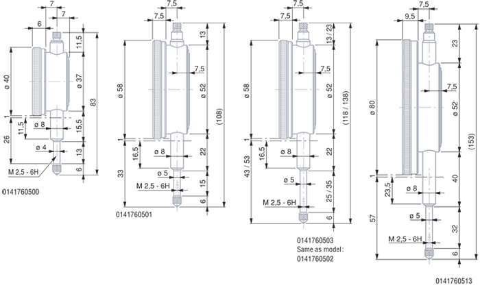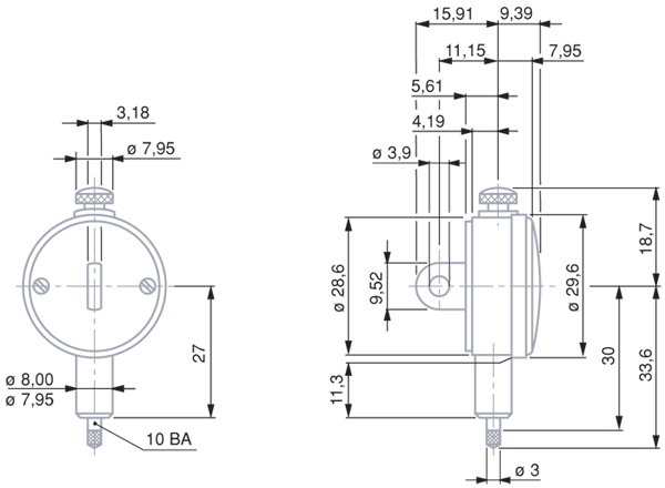 Серия MERCER 70, диаметр 11/8 дюйма или 29 мм. Метрические модели, цена деления шкалы 0,01 мм и 0,002 мм. Без противоударной защиты. Измерительное усилие ≤ 1,5 Н.