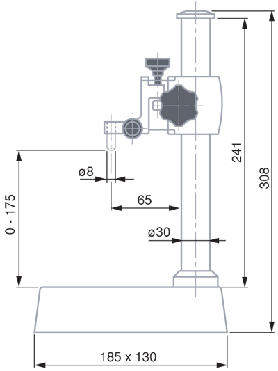 Основание с упорной фронтальной поверхностью. Зажим для хвостовиков 8 мм или индикаторов часового типа с проушиной. Стойка № 01639003 с дополнительным зажимом «ласточкин хвост».