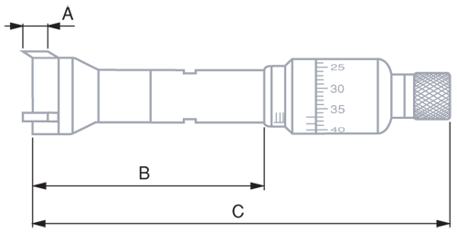 | № Модели | Диапазон измерений, мм | A, мм | B, мм | C, мм |