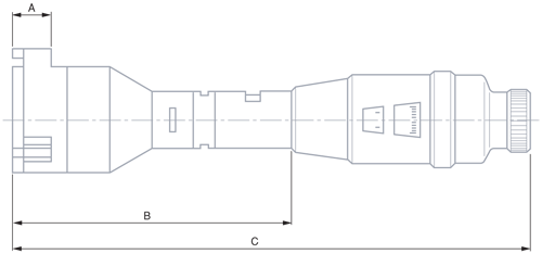 | № Модели | Диапазон измерений,мм | Предельно допустимая погрешность,мкм | Предел воспроизводимости,мкм | A, мм | B, мм | C, мм |