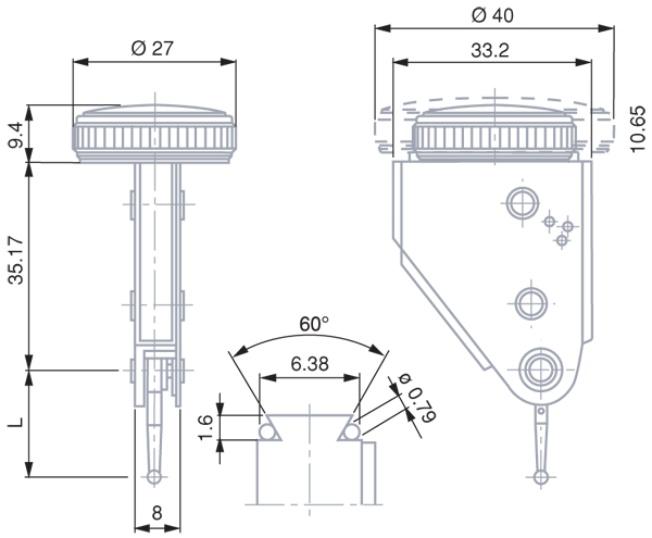 № МоделиЦена деления шкалы, ммИнтервал измерения, мм1 оборот, ммВращающийся циферблат, Ø ммШкалаИзмерительная вставка, L1, ммИзмерительное усилие, Н