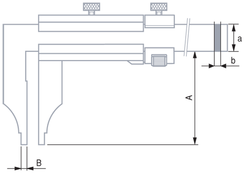 | № Модели | Диапазон измерений, мм | Цена деления шкалы, ммa | a, мм | b, мм | A, мм | B, мм |