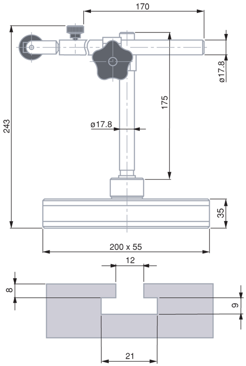Передвижной штатив среднего размера для индикаторов рычажного типа, индикаторов часового типа, электронных щупов и т.д.